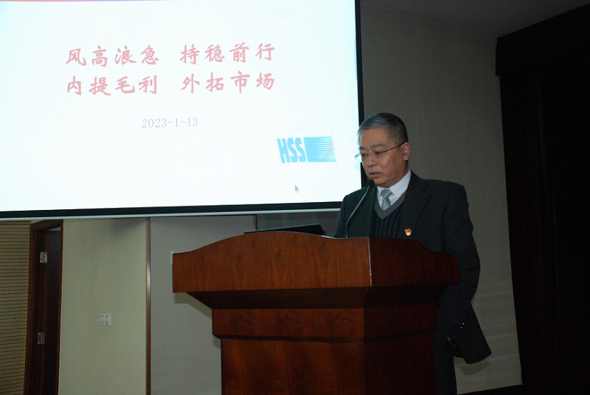 會議在嘹亮的國歌聲中拉開序幕,首先由2022年度2個(gè)優(yōu)秀單位代表--煉鋼分廠和國際業(yè)務(wù)部進(jìn)行經(jīng)驗(yàn)交流分享,2022年度面對能源和原材料價(jià)格上漲的困境,面對新冠疫情、俄烏戰(zhàn)爭等不諸多利因素給國際貿(mào)易帶來了極大的挑戰(zhàn),這兩個(gè)部門不等不靠,創(chuàng)造性開展工作,在挖潛降耗,降本增效取得巨大突破,出口銷量和銷售收入雙創(chuàng)新高,他們工作的亮點(diǎn)和先進(jìn)經(jīng)驗(yàn)非常值得大家借鑒和效仿。